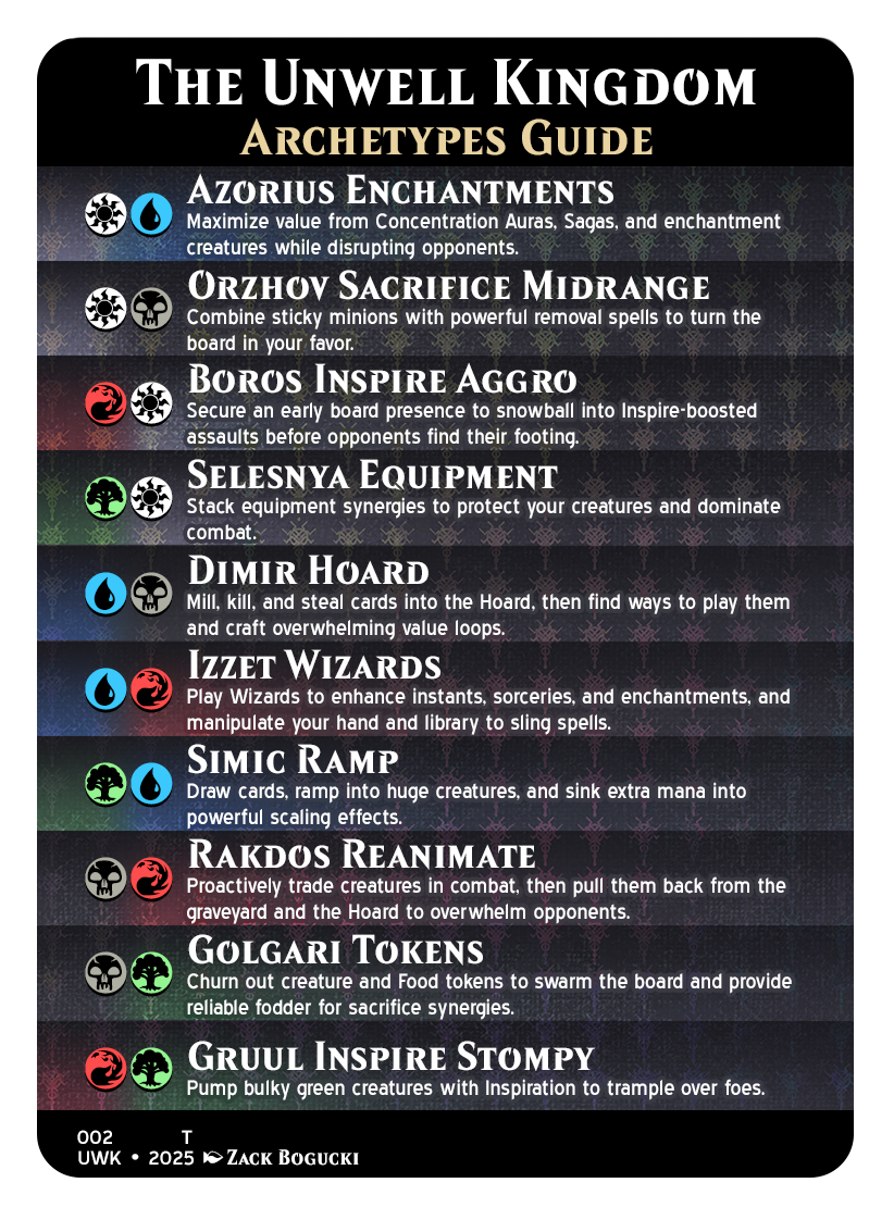 This was a very exciting weekend: The Unwell Kingdom debuted with its first-ever public playtest at a local MtG event! We went with 8-player sealed,